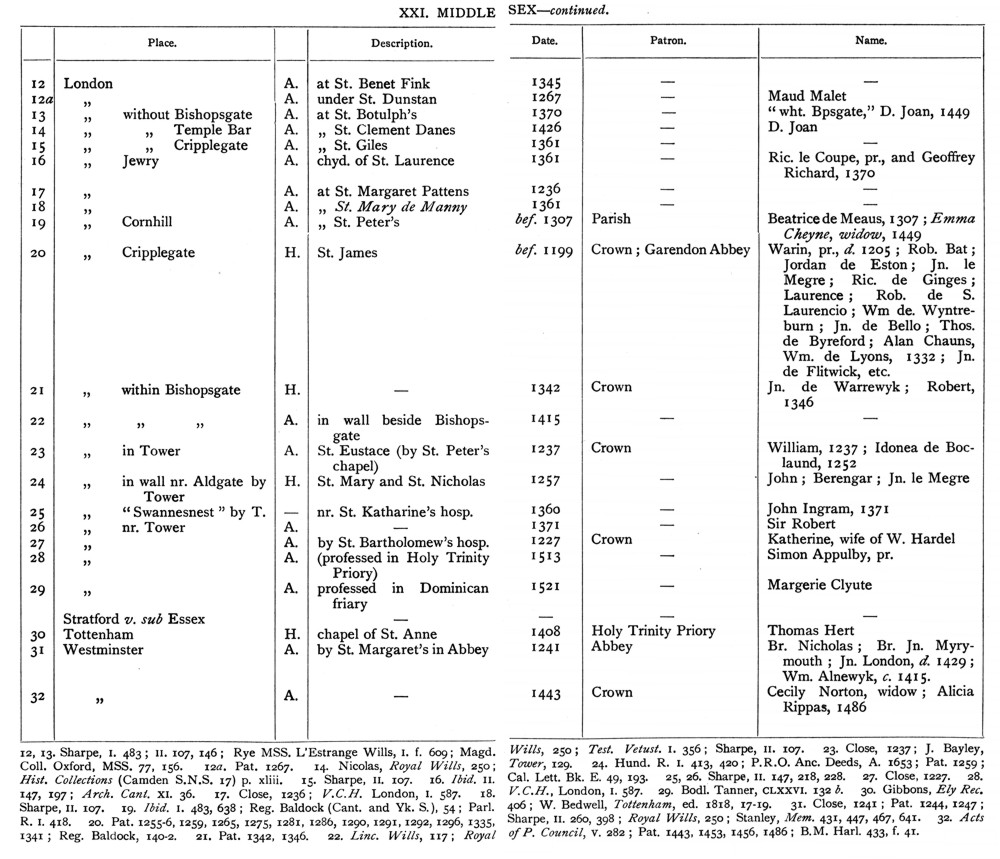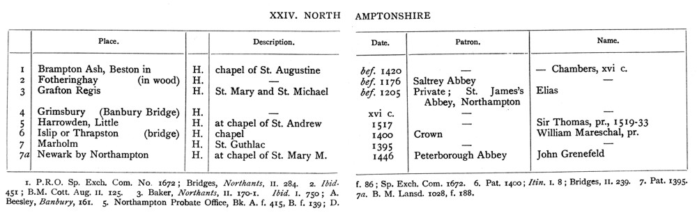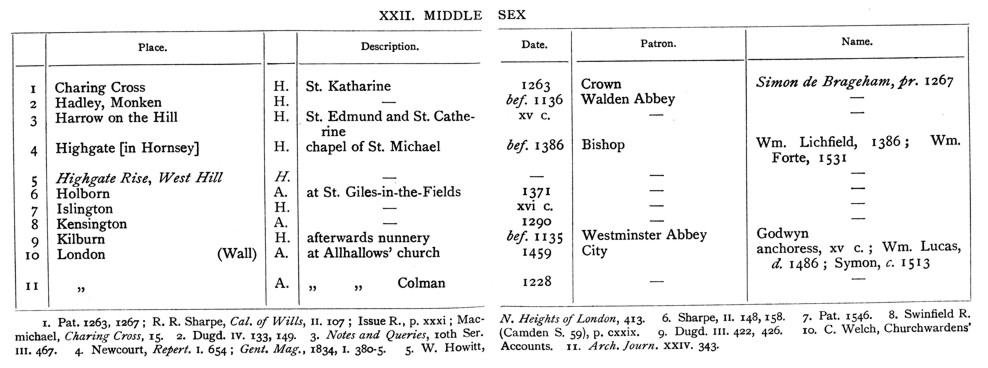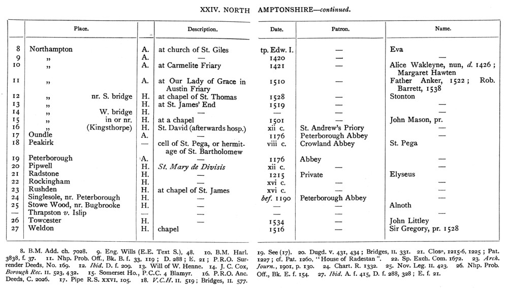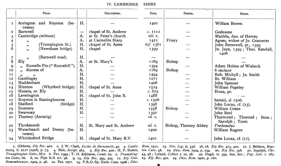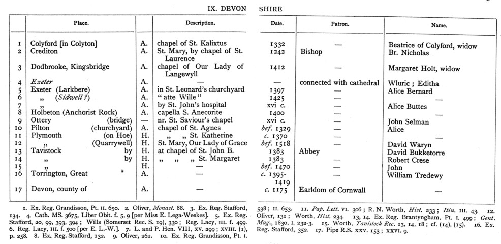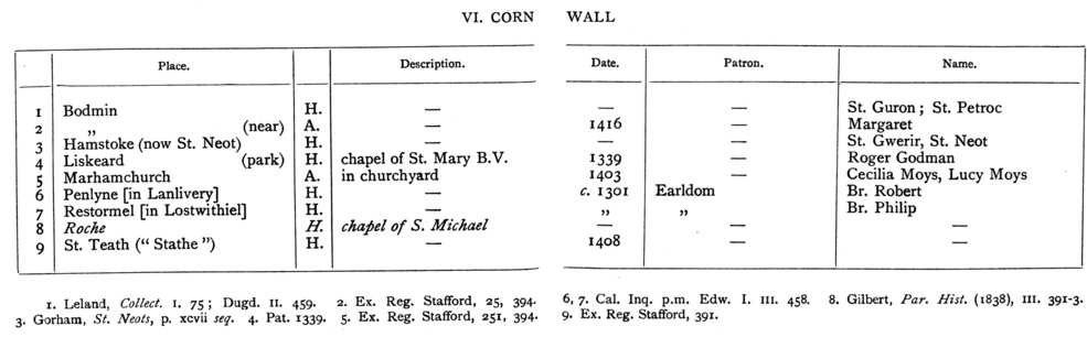 TABULATED LIST OF CELLS EXPLANATION OF HEADINGS, REFERENCES Description. i.e. dedication or situation of cell. H. = hermit, hermitage. A. = anchorite (male or female), anchorage. Date. i.e. the earliest accredited reference ; c. = circa c. = century ; bef. = before ; tp. = temp. Patron. = patron, benefactor, source of endowment. Italics. The use of italics implies uncertainty. When a name is italicized it signifies tha the person is described not as hermit by keeper, chaplain, etc. Name. With name of inmate, D. = Dame ; Br. = Brother ; pr. = priest ; d. = died ; n.d. = no date recorded. N. B. —The