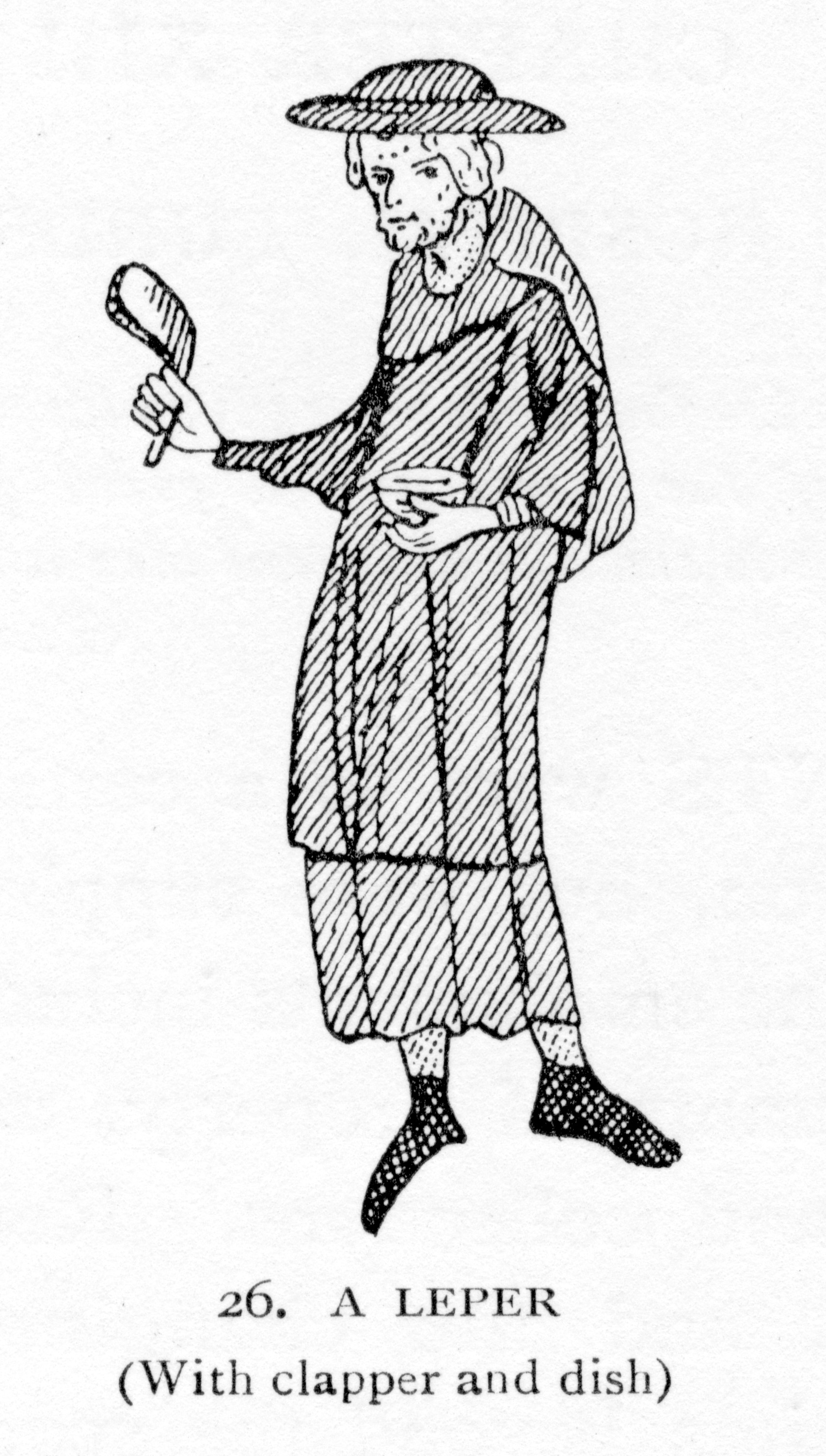 leper (with clapper and dish).]